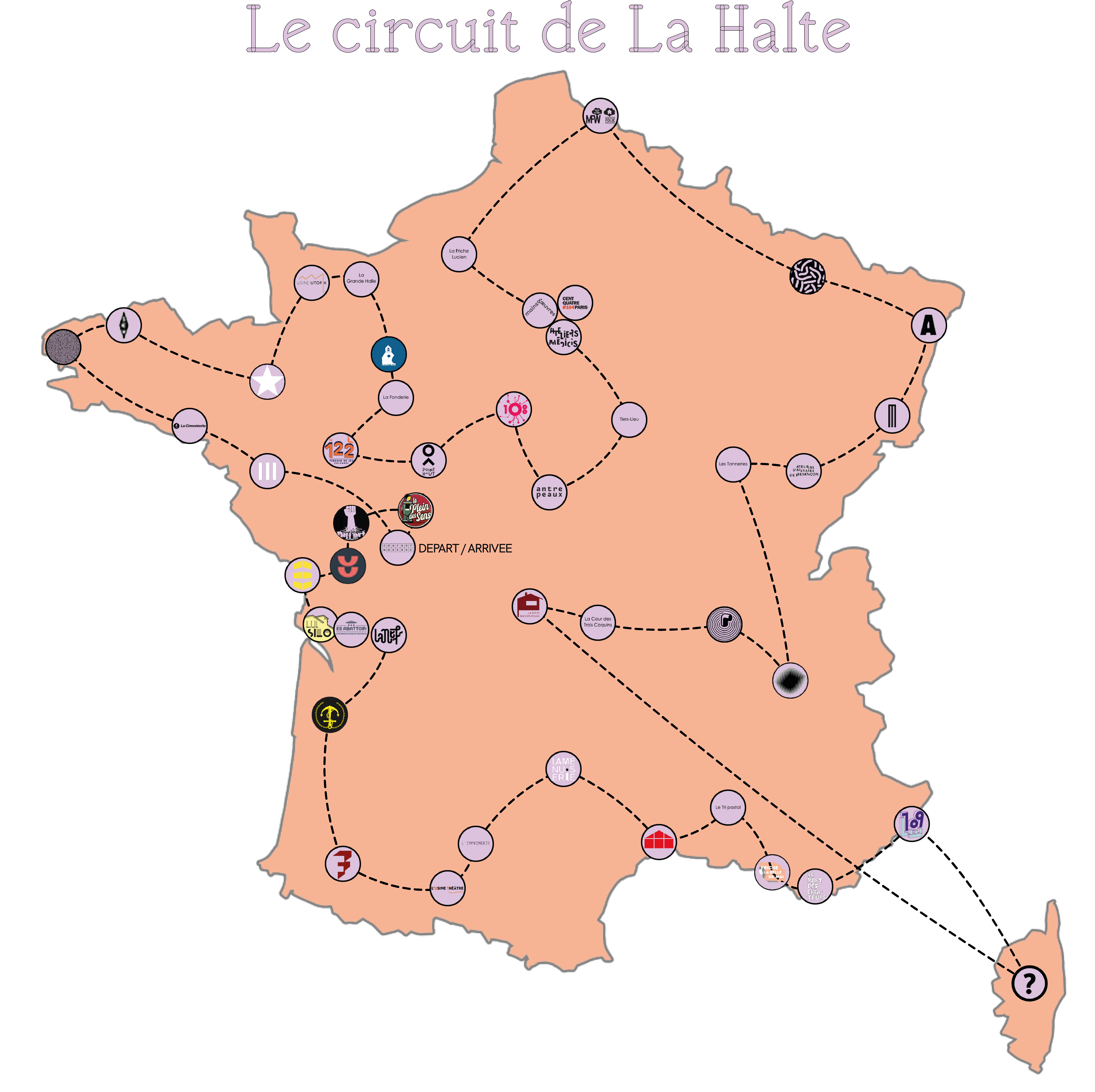 De septembre 2022 à juillet 2023, La Halte se déplace donc un peu partout en France, dans chacune des 13 régions suivantes : la Nouvelle-Aquitaine, l’Occitanie, la Provence-Alpes-Côte d’Azur, l’Auvergne-Rhône-Alpes, la Bourgogne Franche Comté, le Centre-Val de Loire, les Pays de la Loire, le Grand-Est, l’Île-de-France, les Hauts-de-France, la Normandie, la Bretagne et la Corse.